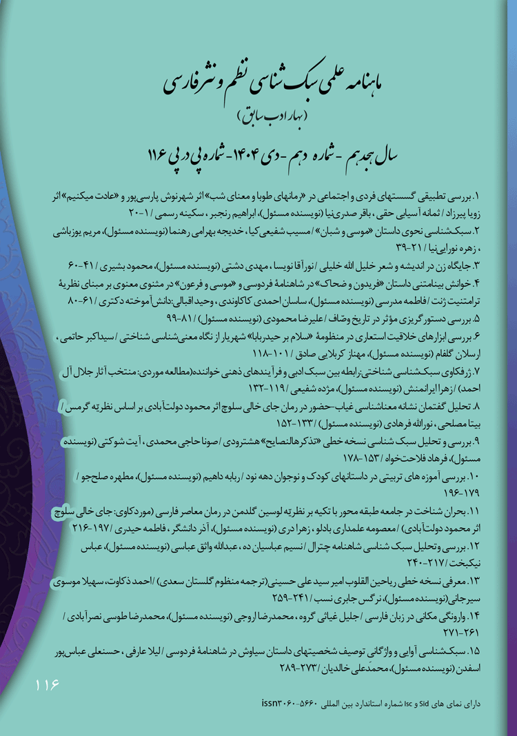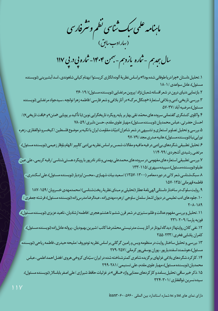 با افتخار اعلام مینماییم که ماهنامه علمی–پژوهشی «سبک شناسی نظم و نثر فارسی» موفق به دریافت نمایه جهانی EBSCO گردیده است. این موفقیت ارزشمند، نشاندهنده اعتبار علمی، کیفیت مقالات منتشرشده و رعایت استانداردهای بینالمللی نشر علمی در این نشریه است. سند دریافت نمایهآمار و ارقام نشریه